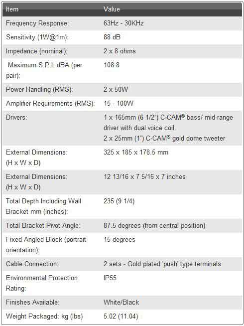 - Enojni stereo dvosistemski zvočnik s 6,5" C-CAM bass driverjem in dvojnim 1" C-CAM zlatim kupolastim visokotoncem; dizajnirani za zagotavljanje definiranih visokih tonov in dinamike srednjih in nizkih tonov.