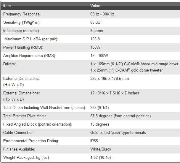 - Dvosistemski zvočnik s 6,5" C-CAM bass driverjem in 1" C-CAM zlatim kupolastim visokotoncem; dizajnirana za zagotavljanje definiranih visokih tonov in dinamike srednjih in nizkih tonov.