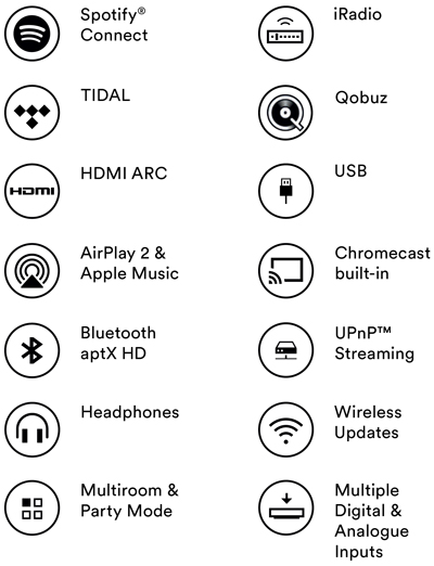 - Podprti zvočni zapisi: WAV, FLAC, AIFF, ALAC, MP3, AAC, OGG, WMA, DSD in M4A.